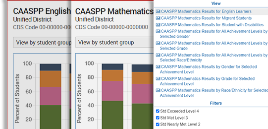 See how California's student performed on the state's standardized tests with detailed graphs that show how differences in socioeconomic background, disability, homelessness and more affects student performance.