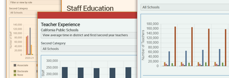 Find detailed data on California's public school teachers, administrators and other staff, including demographics, education levels and student-staff ratios.